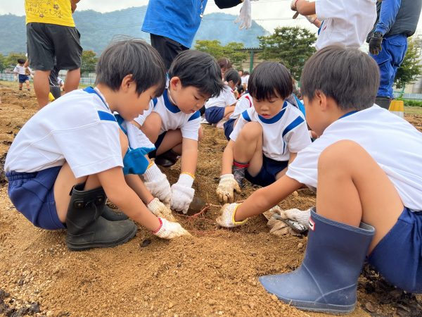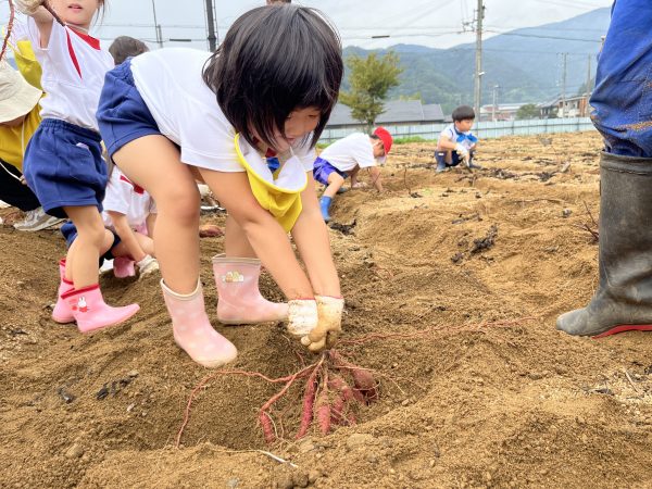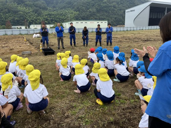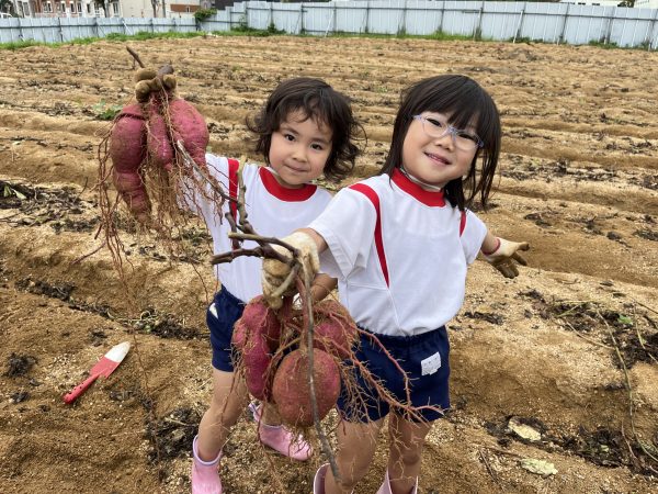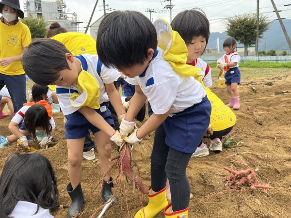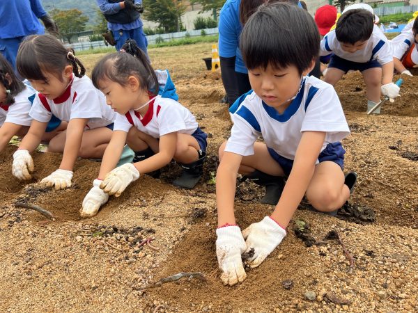 10月3日(金)にきりん・ぱんだ組が高浜キッズこども園と合同で、伊藤商店様に行きさつまいも掘りを行いました。