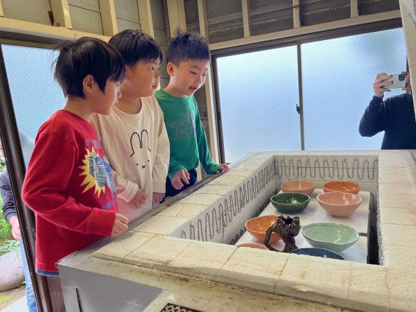 - 焼き窯と完成したお椀を見て、目を輝かせていました。