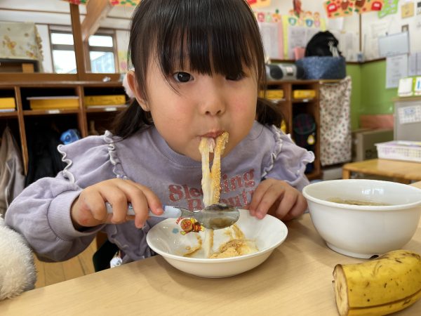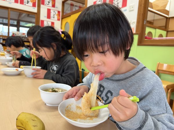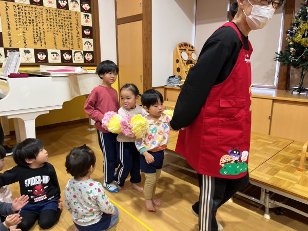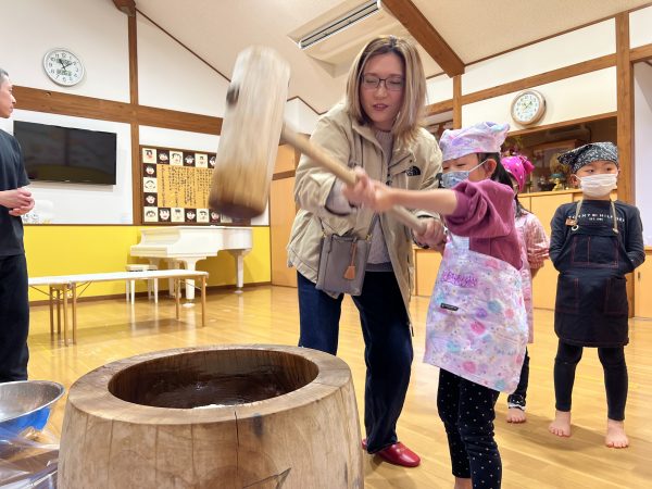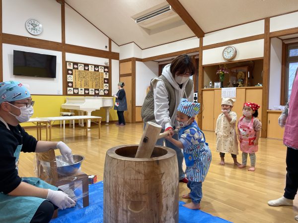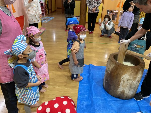 - 柔らかく長く伸びるおもちを、嬉しそうに食べていました。今年最後の行事も大成功で終わりました。今年も子ども達が元気に過ごせたことをとても嬉しく思います。来年も元気に登園してきてくれることを心待ちにしています。