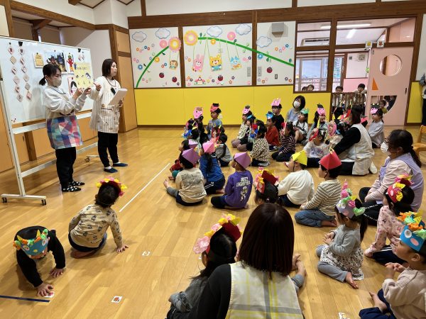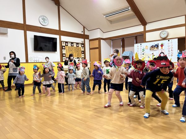 - 元気良く「豆まき」の歌を歌い、「鬼のパンツ」のダンスをしました。