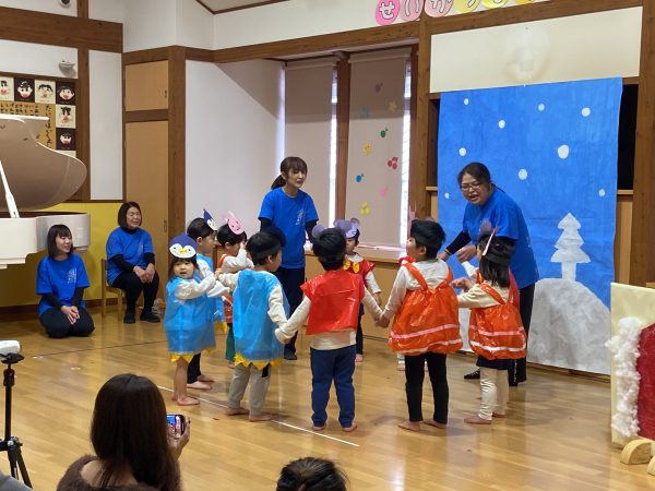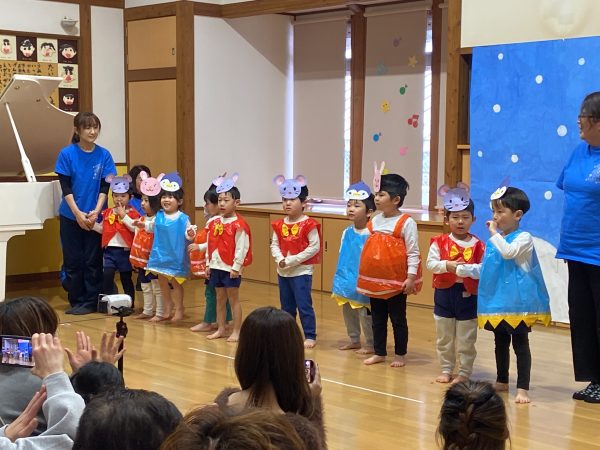 - 可愛らしい動物になりきって、楽しく歌ったり踊ったりしました。