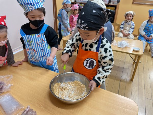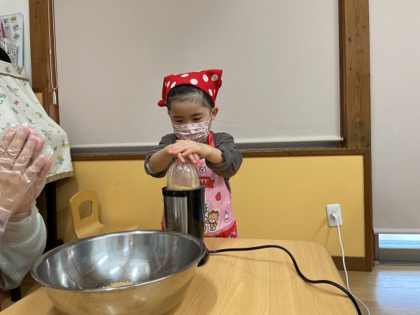2月12日(木)にこあら組がきな粉作りを行いました。