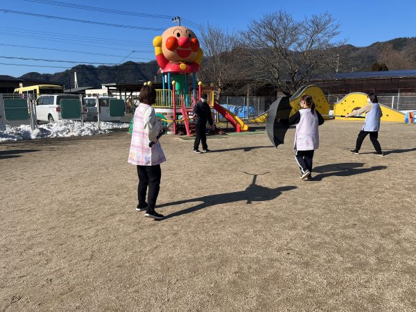 園庭に不審者が現れました。