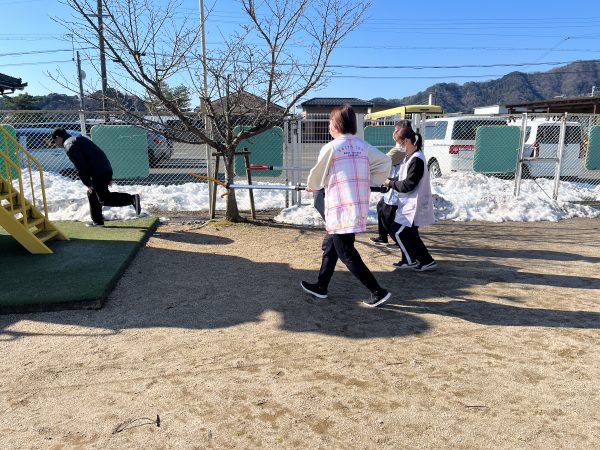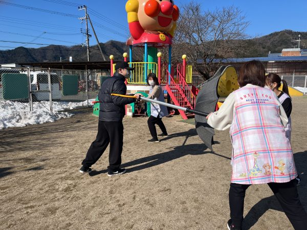 子どもを守る職員と、不審者の対応をする職員に分かれて、素早く対処しました。