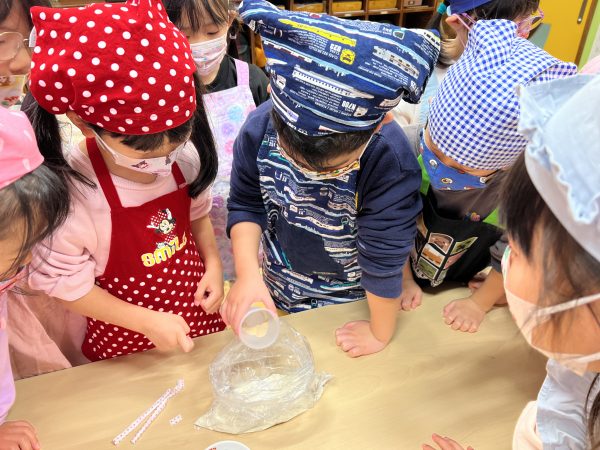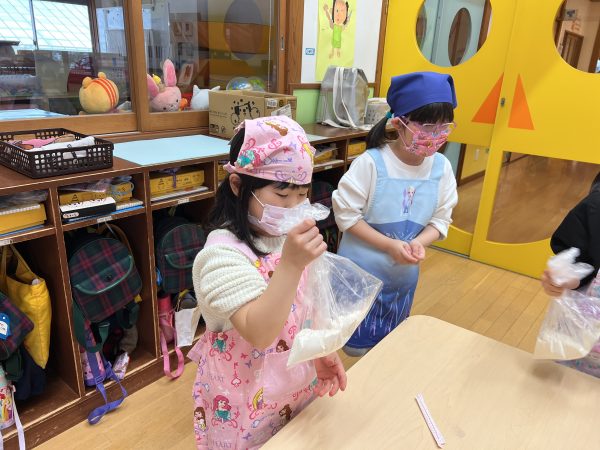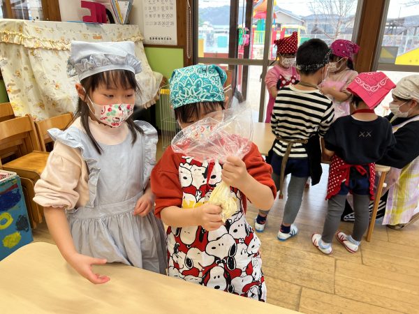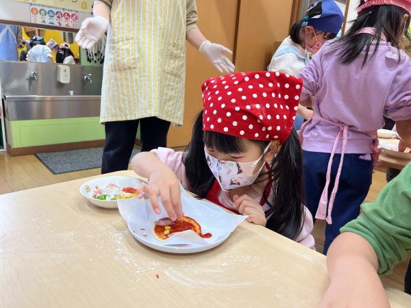 2月26日(木)にきりん組がピザパン作りを行いました。